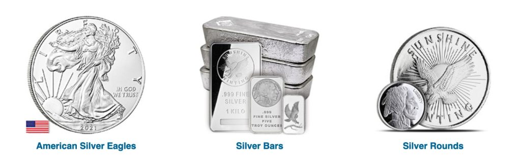 - Silver Bars (1 oz, 10 oz, 100 oz)