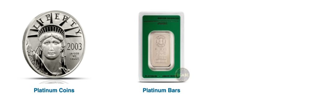 Available options include the Platinum Canadian Maple Leaf and Platinum American Eagle. These coins combine aesthetic appeal with premium platinum quality.