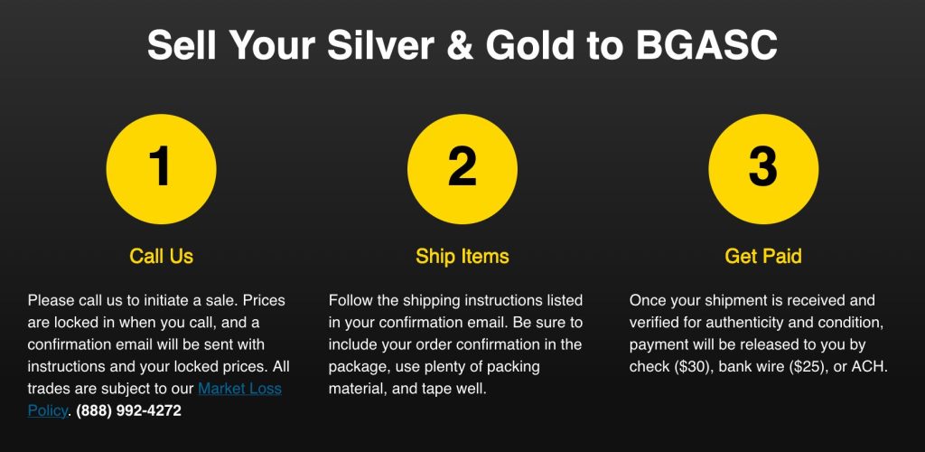 - Call Us: Contact (888) 992-4272 to initiate your sale. BGASC locks your price immediately and sends detailed instructions via email. All transactions must comply with BGASC’s market price policies.