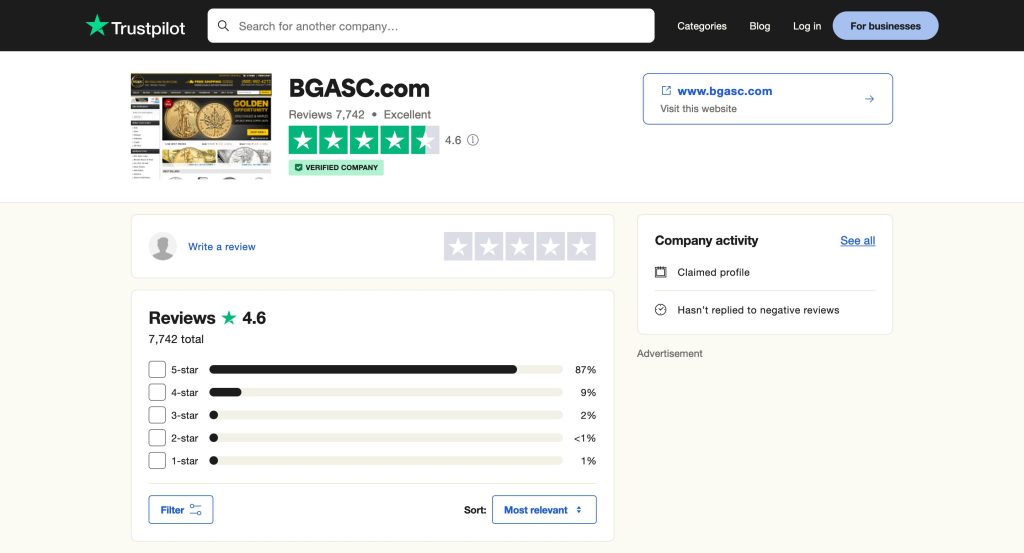 BGASC operates as a precious metals retailer specializing in gold and silver products, garnering predominantly positive feedback from customers.