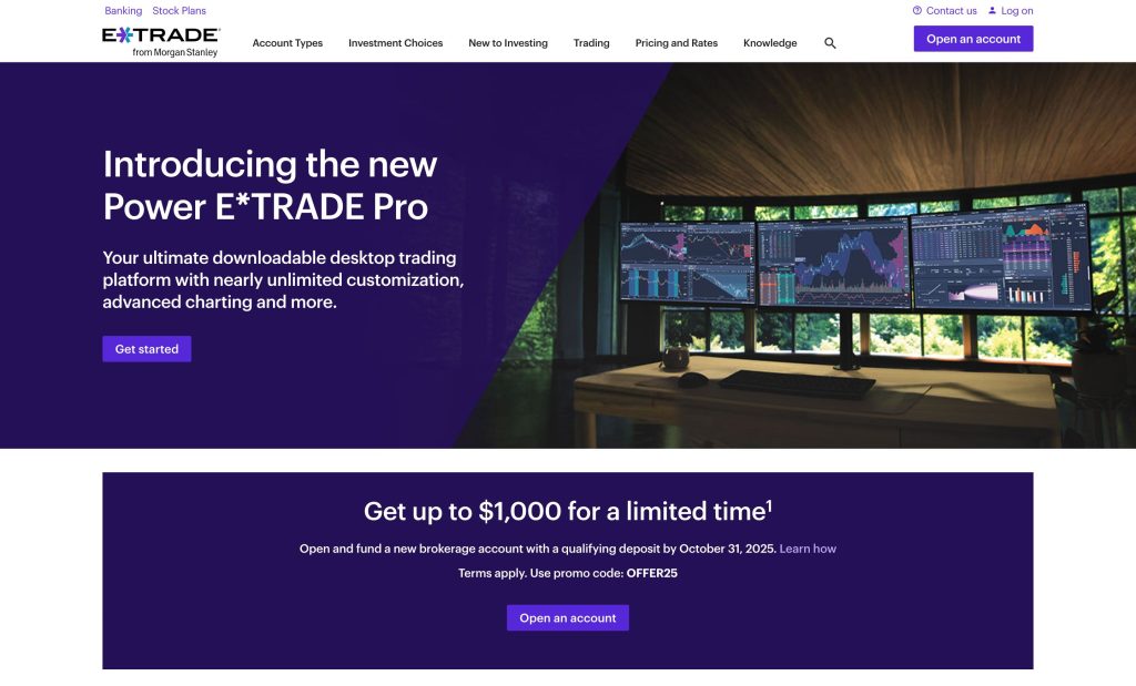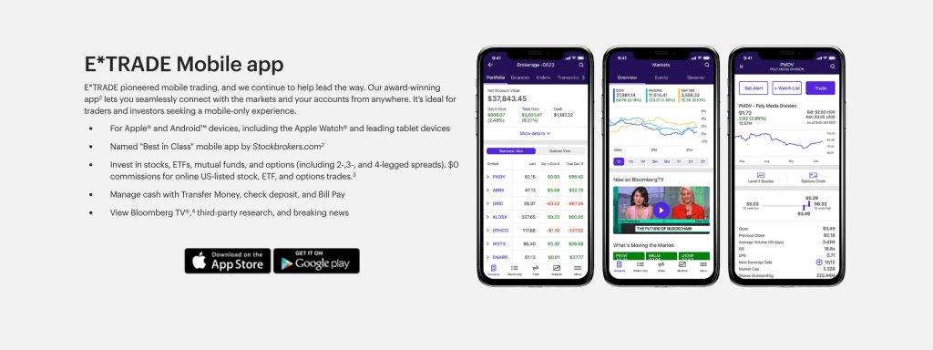- User-Friendly Dual Platform System: E*TRADE Mobile app rated 4.75/5 and Power ETRADE platform delivers real-time quotes with customizable charts.
