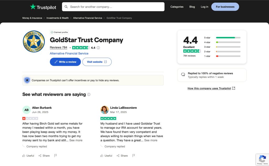 GoldStar Trust’s ratings paint a conflicting portrait across major review platforms: