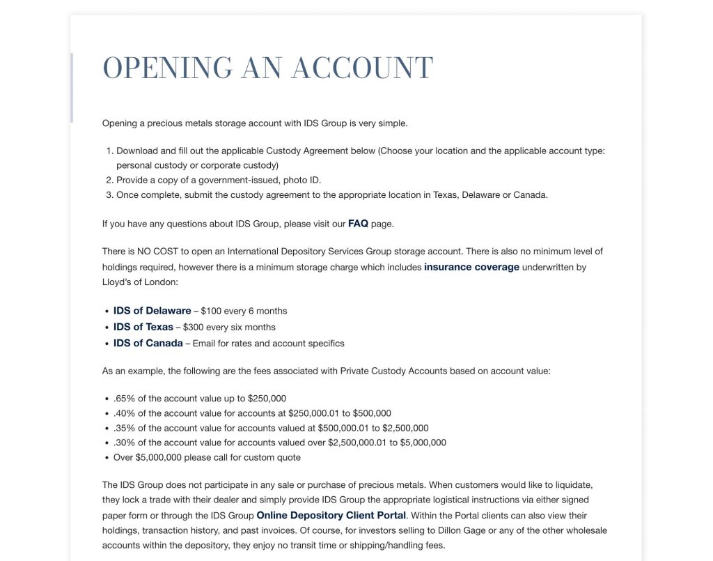 What caught our attention during research was that IDS includes segregated storage at these standard rates. Most depositories charge 20-40% more for keeping your metals physically separated from other clients’ holdings.