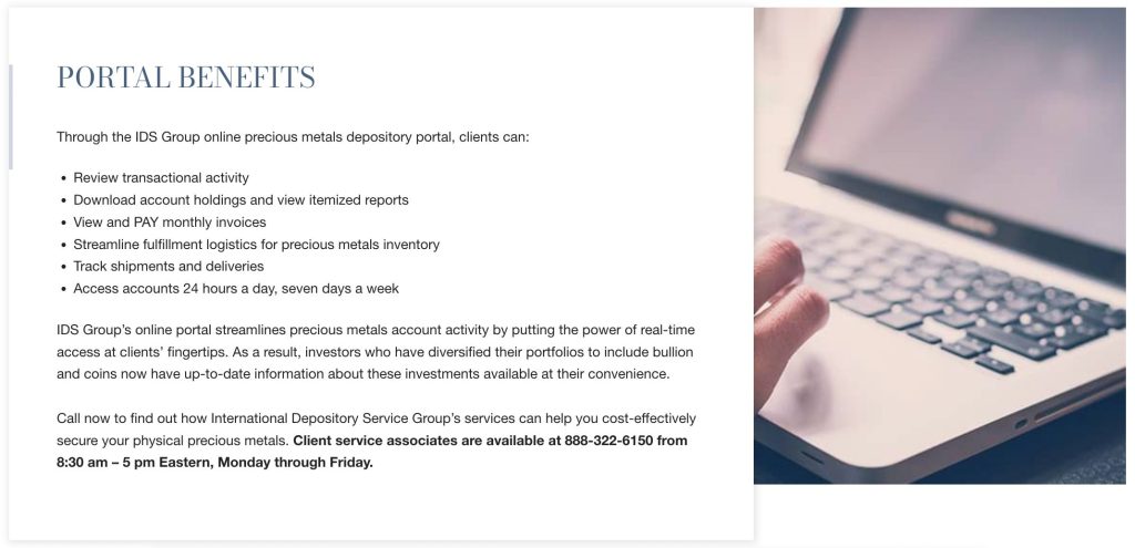IDS operates through a 24/7 client portal that displays real-time inventory status and allows immediate transaction requests. You can access your account from any device to review holdings, download statements, or initiate transfers.