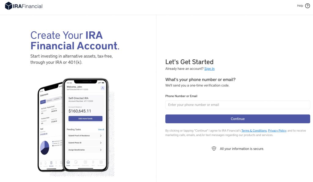 You start by visiting IRA Financial’s website and clicking “Open Account.” The platform presents two paths: schedule a free consultation with a specialist or complete the application independently.
