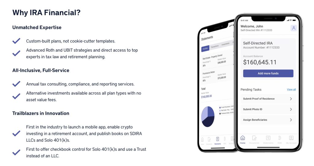 Whether you’re eyeing real estate deals or want to add Bitcoin to your retirement mix IRA Financial delivers the tools and flexibility to make it happen.