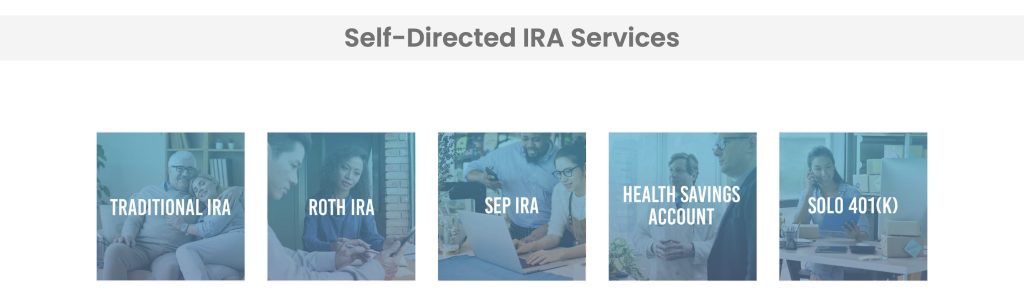 The company administers seven different IRA types: Traditional, Roth, SEP, Solo 401(k), Spousal, Inherited, and SIMPLE IRAs.